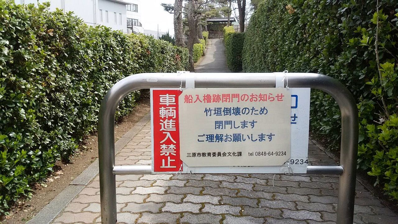 舟入櫓跡庭園が1ケ月前から竹垣が壊れ倒壊の恐れがあるんで閉鎖されとるよ。